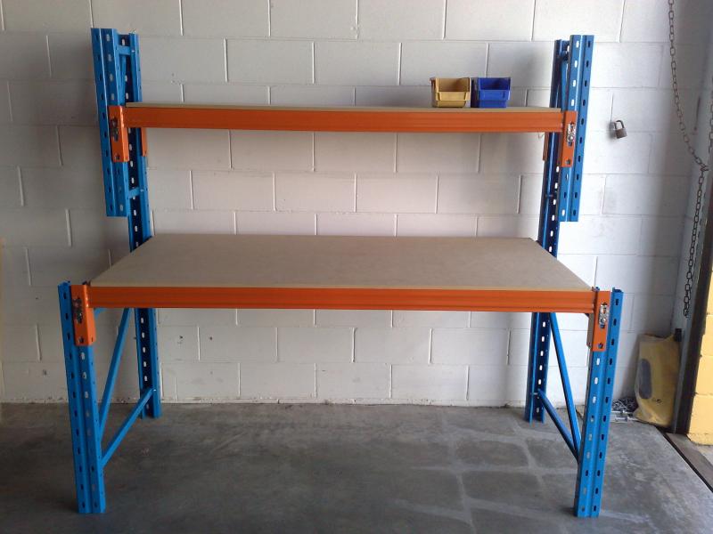 WORK BENCH, LONG SPAN WORK BENCHES, PALLET RACKING WORK BENCHES. WORK BENCH WITH TOP SHELF